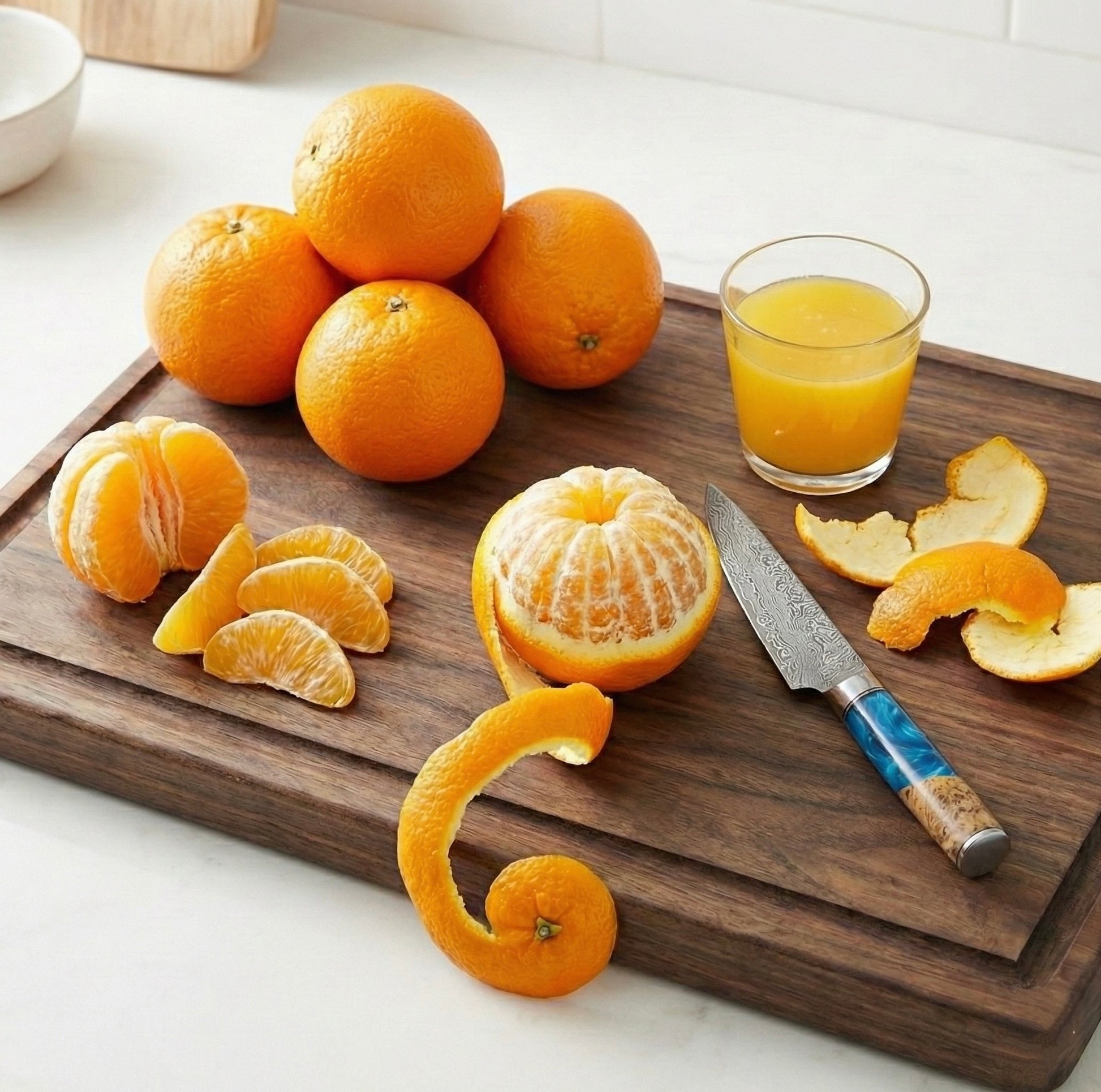 Whether you are delicately paring fruit or carving through a crusty loaf, the Ocean Azure series offers a precision-forged blade tailored for every specific kitchen task. Because each handle is crafted from a unique blend of hand-poured resin and organic burl wood, your set will be a one-of-a-kind masterpiece that no other chef owns.