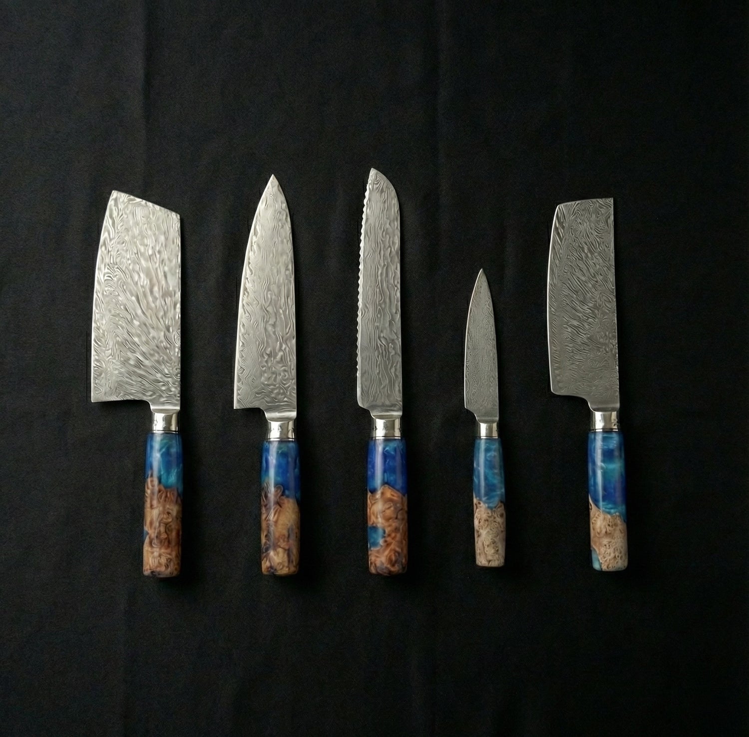 The Ocean Azure Series: 5-Piece Professional Damascus Steel Master Set by Misuki